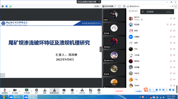 9月9日下午,ylzzcom永利总站线路检测特邀中国科学院海西研究所泉州装备制造中心的周泽栖工程师线上开展了题为“尾矿坝渗流破坏特征及溃坝机理研究”的学术报告,ylzzcom永利总站线路检测研究生、本科生和部分教师参加了此次报告会。