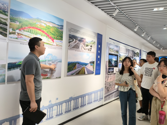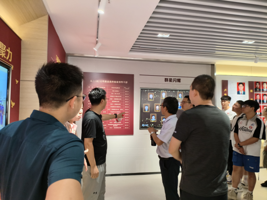 企业工作人员为同学们讲解企业“荣史馆”