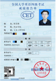 一群脚踏实地、孜孜不倦的追光者,在英语学习的征途上稳健地迈进。他们以实际行动深刻诠释了“功不唐捐,玉汝于成”的古老智慧。今日,让我们一并深入探究那些在2025年6月英语四级考试中脱颖而出的土木工程学子,领略他们作为榜样的力量,并从中汲取激励前行的微光。