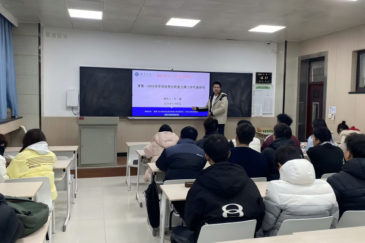 刘通老师的分享聚焦“弹簧-SMA双系统自复位耗能支撑力学性能研究”,引发了在场师生的广泛兴趣。他详细阐述了形状记忆合金(SMA)材料的超弹性特性及其与弹簧系统的协同工作机理,通过循环加载试验数据,验证了该双系统支撑在地震作用下的优异自复位能力和耗能性能。明确了这种新型支撑体系能够有效减少结构残余变形的结论,为抗震结构设计提供了新思路。刘通老师结合具体试验曲线,对自复位支撑的参数优化和应用设计方案进行了深入解读。